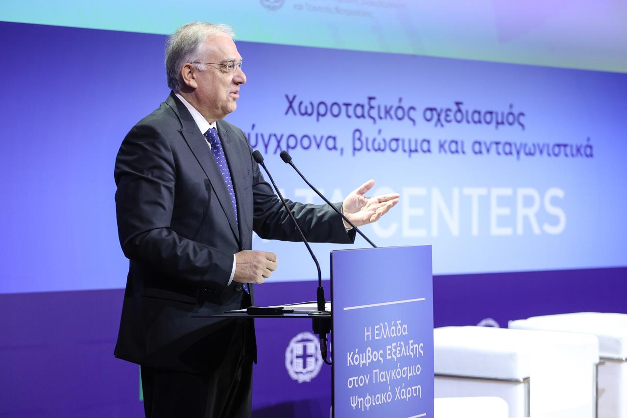 Τη μελέτη για τη χωροθέτηση και ανάπτυξη Κέντρων Δεδομένων (Data Centers) στην Ελλάδα παρουσίασε το Υπουργείο Ψηφιακής Διακυβέρνησης και ΤΝ σε συνεργασία με τα Υπουργεία Περιβάλλοντος και Ενέργειας και Ανάπτυξης. Η εκδήλωση πραγματοποιήθηκε στο Ωδείο Αθηνών με τη συμμετοχή των Υπουργών Ψηφιακής Διακυβέρνησης και ΤΝ, Δημήτρη Παπαστεργίου και Ανάπτυξης, Τάκη Θεοδωρικάκου.